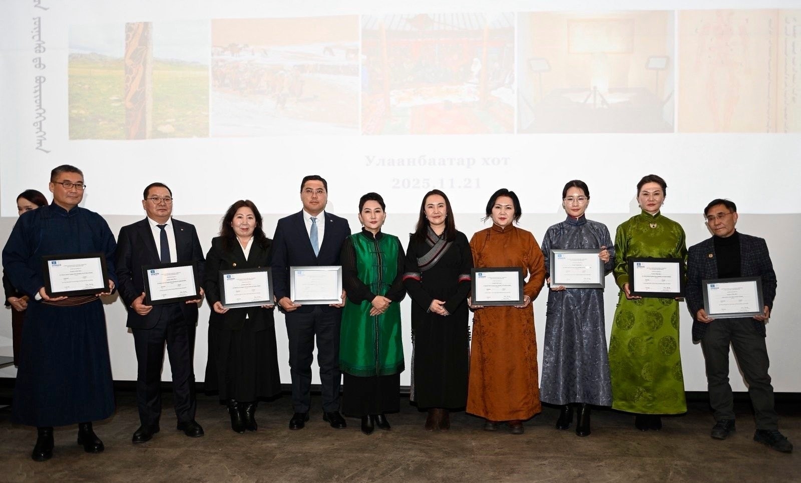 Монгол Улсаас ЮНЕСКО-д бүртгэгдсэн соёлын өвийн батламж гардуулах ёслолын арга хэмжээг 2025 оны 11 дүгээр сарын 21 буюу Өвлийн тэргүүн сарын шинийн нэгэн, Эзэн Богд Чингис хааны мэндэлсний 863 жилийн ой, “Монгол бахархлын өдөр”-өөр Чингис хаан Үндэсний музейд зохион байгуулав.
